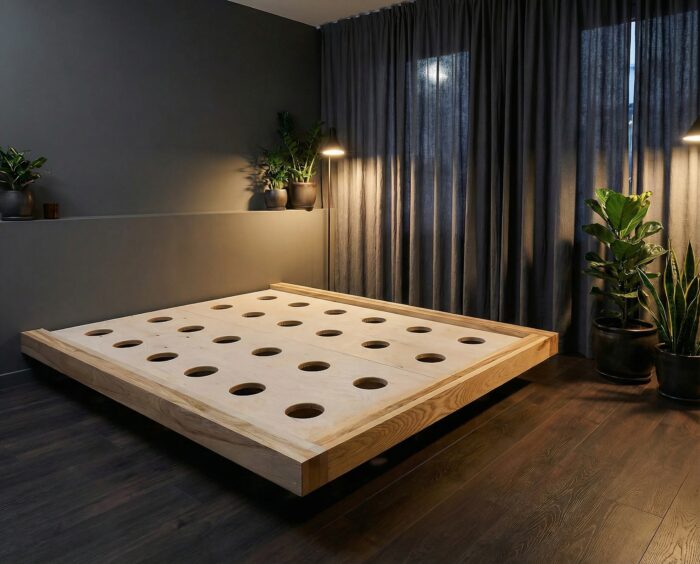 Ainulaadne disainilahendus annab võimaluse personaliseerida voodi täpselt oma ruumi ja maitsele vastavaks. Kas eelistate skandinaavia minimalismi, tööstusdisaini või modernset luksust – hõljuv voodi sobib kõikide nende stiilidega ja kombineerub suurepäraselt naturaalse puidu sooja toonidega.