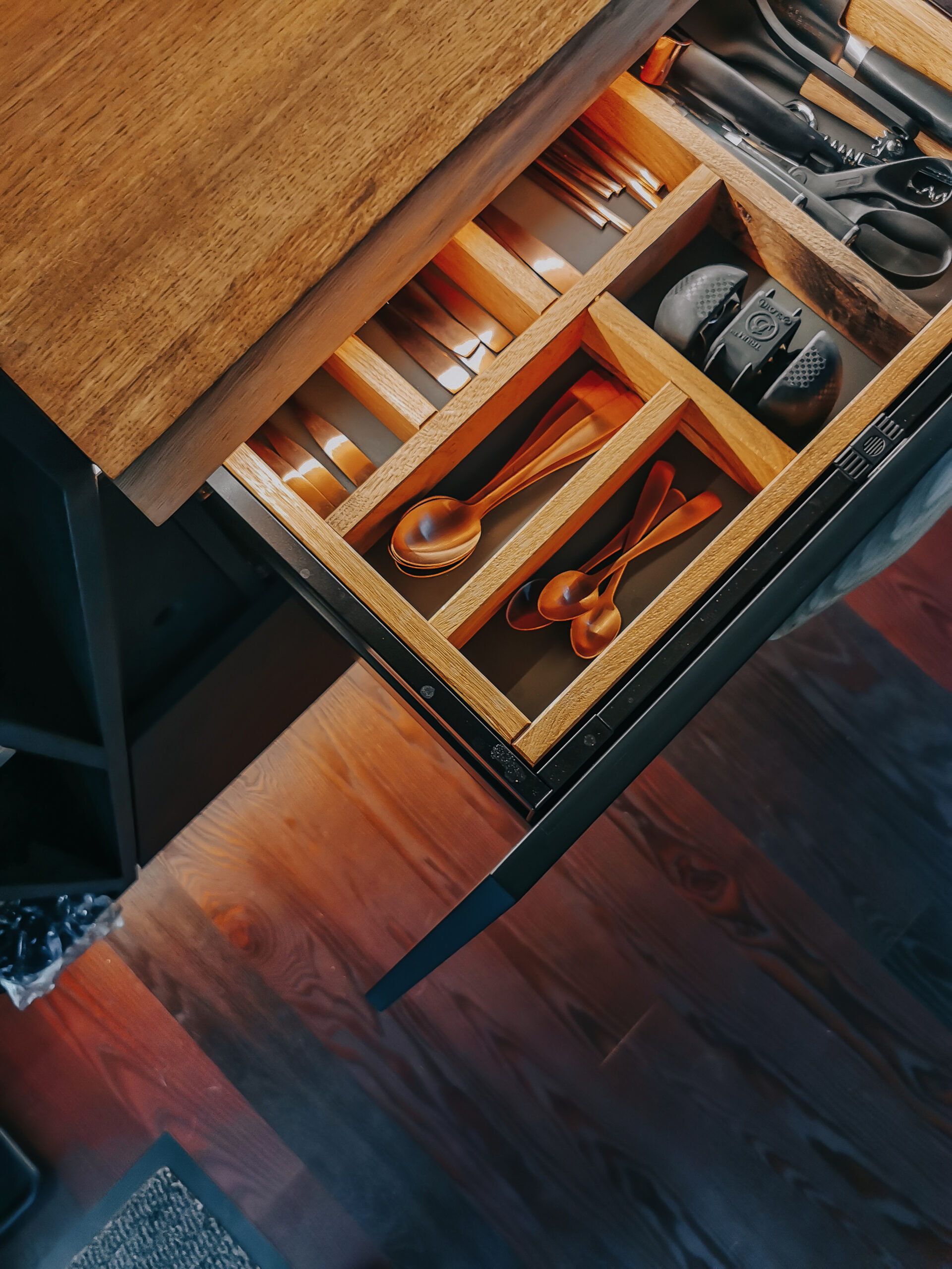 Kasutasime materjale ja lahendusi, mis ühendavad vastupidavuse ning kauni välimuse. MDF fassaadid, matt viimistlusega ja kvaliteetne tammest töötasapind tagavad pikaajalise ilu. Iga detail – sahtlimehhanismidest hingedeni – on valitud, et see teeniks omanikku aastaid.